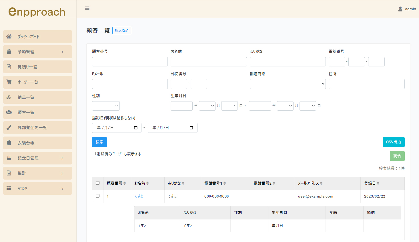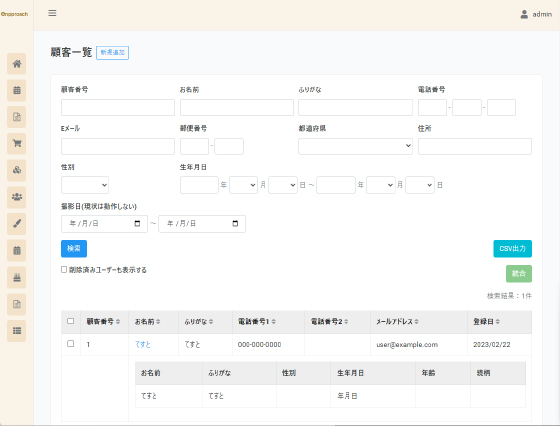 - 顧客の検索・出力
