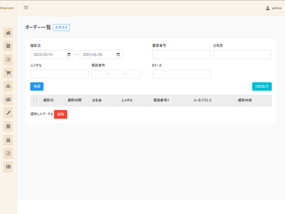 - オーダー情報の検索・出力