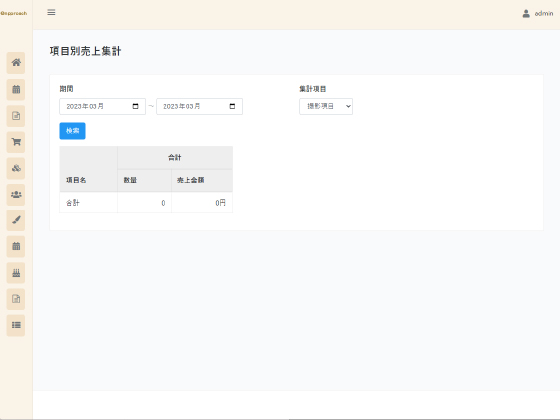 月別の売上集計や項目別(撮影項目別・商品別・カメラマン別等)の売上集計が可能です。